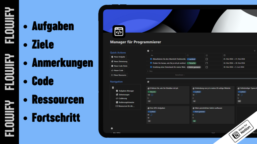 Steigern Sie die Leistung Ihres Entwicklungsteams mit unserer Notion-Vorlage für das Programmierer-Management! Dieses Tool wurde entwickelt, um Aufgaben, Ziele, Code-Notizen, Code und Ressourcen zu zentralisieren und zu optimieren. Es ist unentbehrlich für jeden Manager eines Entwicklerteams, der auf Effizienz und Organisation in jeder Phase des Entwicklungsprozesses Wert legt.